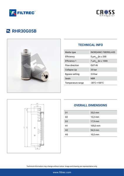 Engineered with their high performance media and a durable design, the RHR30G05B provides reliable and consistent performance over its lifespan, even in harsh operating environments. When you order from FilterFinder, you can trust that you are getting a reliable and high-quality replacement filter that will keep your system running smoothly.