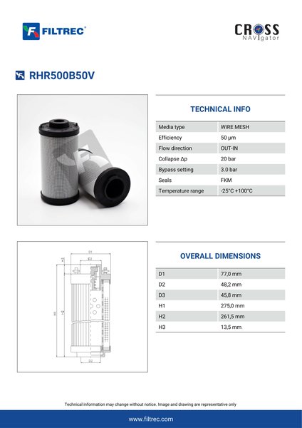 Engineered with their high performance media and a durable design, the RHR500B50V provides reliable and consistent performance over its lifespan, even in harsh operating environments. When you order from FilterFinder, you can trust that you are getting a reliable and high-quality replacement filter that will keep your system running smoothly.