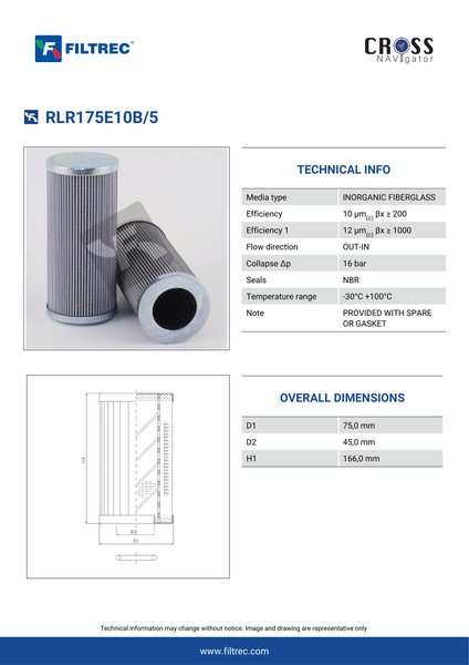 Genuine Filtrec RLR175E10B/5. This Filtrec element is designed to meet or exceed the quality and performance of brand OEM’s ensuring superior filtration performance and long-lasting durability.