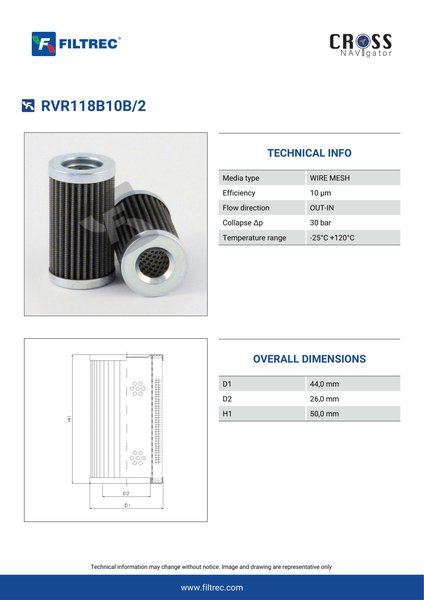 Genuine Filtrec RVR118B10B/2. This Filtrec element is designed to meet or exceed the quality and performance of brand OEM’s ensuring superior filtration performance and long-lasting durability.