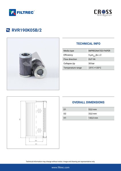 The efficiency of the element is shown using the Micron (µ) and Beta (β) ratings. The micron rating indicates the size of the particle being filtered and the beta rating the efficiency, calculated as 1/β.