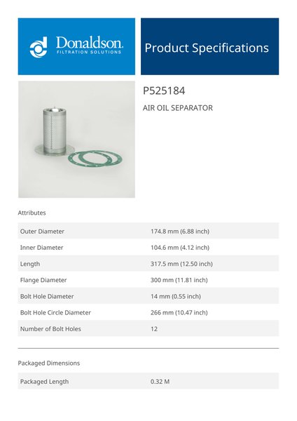 Genuine Donaldson P525184 Air Oil Separator is designed to separate oil from compressed air systems, reducing oil carryover and improving air quality. It enhances system efficiency and protects downstream equipment.Built with durable materials, this separator ensures reliable operation in industrial and automotive applications.