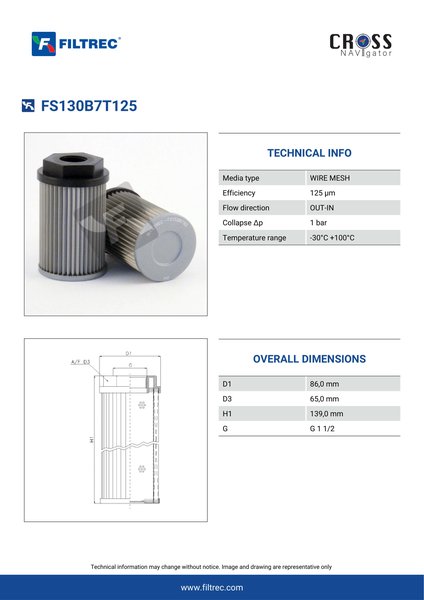 Engineered with their high performance media and a durable design, the FS130B7T125 provides reliable and consistent performance over its lifespan, even in harsh operating environments. When you order from FilterFinder, you can trust that you are getting a reliable and high-quality replacement filter that will keep your system running smoothly.