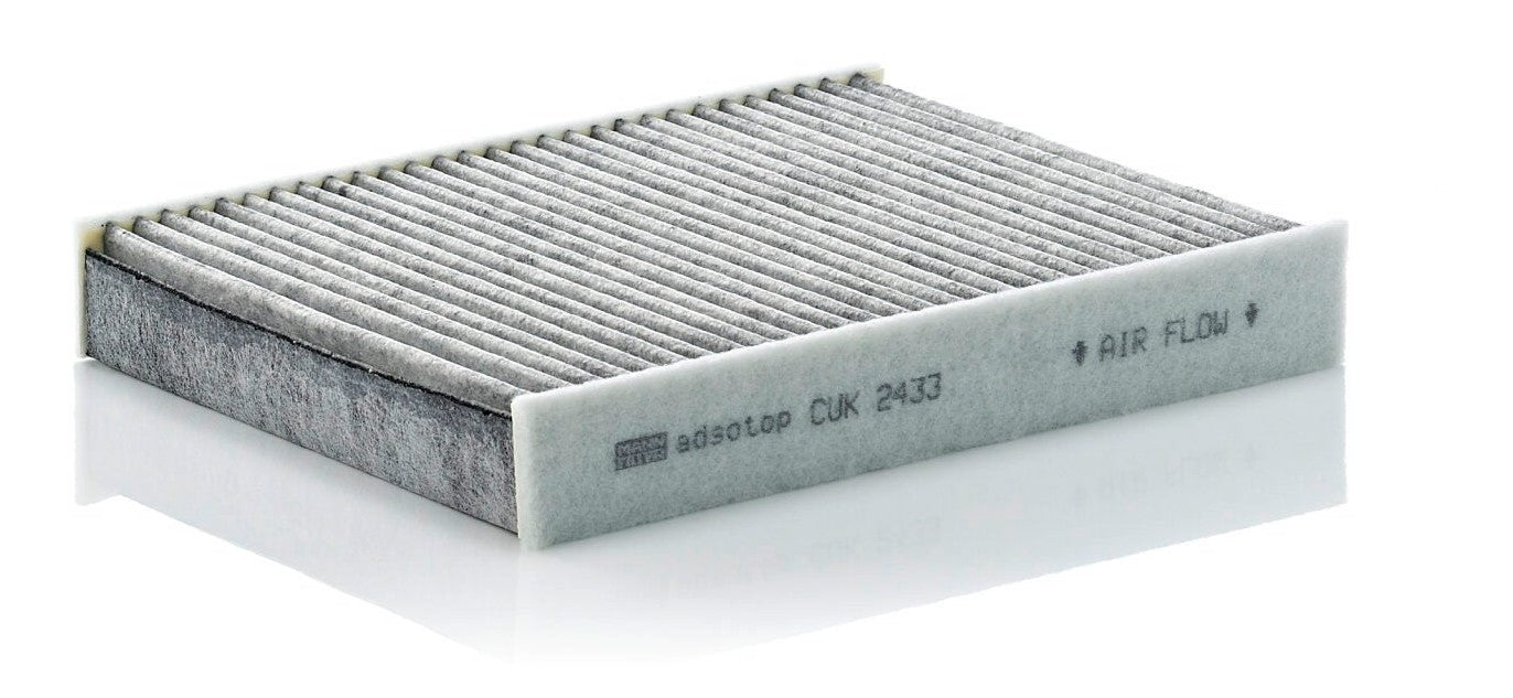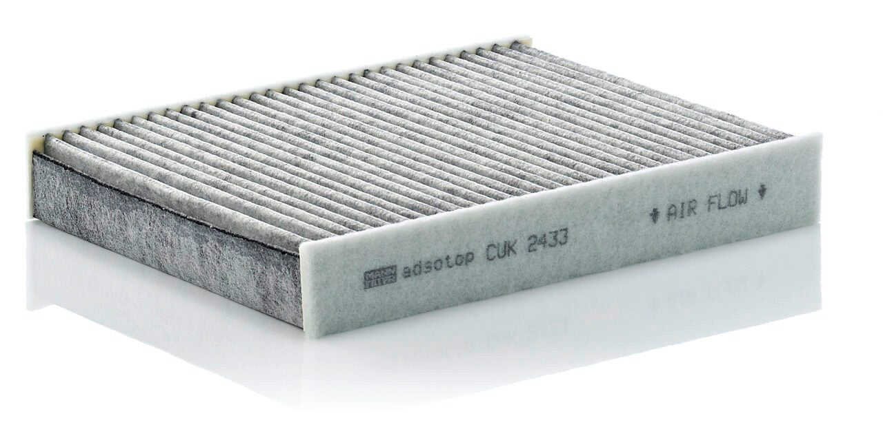 High-quality MANN-FILTER cabin filters with active carbon - nearly 100% protection from particles like pollen, diesel soot & tyre abrasion / Additional protection from harmful gases & unpleasant odour. The trated highly-effective activated carbon gives protection against harmful gases such as ozone, nitrogen oxide or sulphur dioxide and eliminates unpleasant odours during the entire service interval.