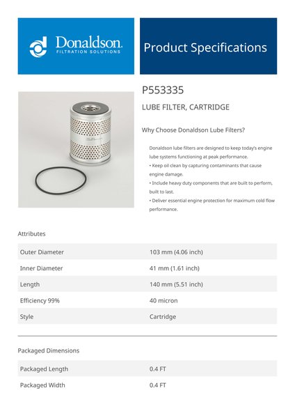 Why Choose Donaldson Lube Filters?Donaldson lube filters are designed to keep today’s engine lube systems functioning at peak performance.