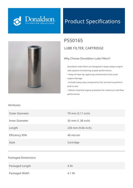 Why Choose Donaldson Lube Filters?Donaldson lube filters are designed to keep today’s engine lube systems functioning at peak performance.
