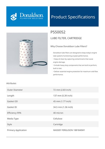 Why Choose Donaldson Lube Filters?Donaldson lube filters are designed to keep today’s engine lube systems functioning at peak performance.