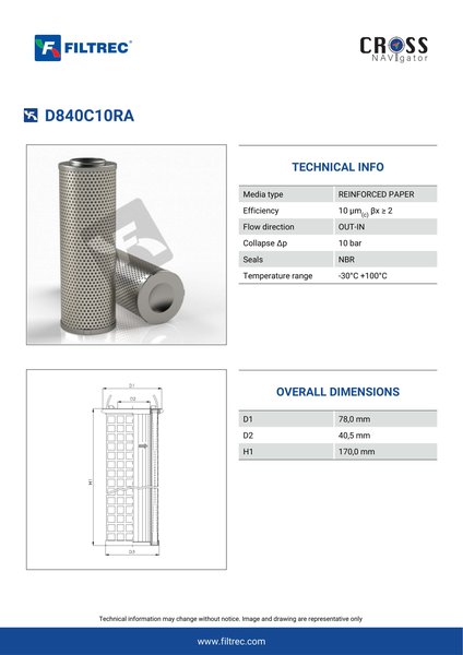 Genuine Filtrec D840C10RA. This Filtrec element is designed to meet or exceed the quality and performance of brand OEM’s ensuring superior filtration performance and long-lasting durability.