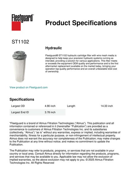Fleetguard ST1102 Replacement Hydraulic Filters