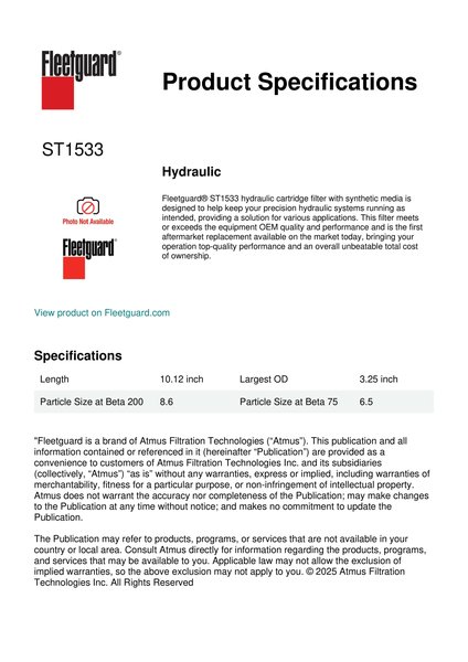 Fleetguard ST1533 Replacement Hydraulic Filters