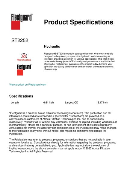 Fleetguard ST2252 Replacement Hydraulic Filters