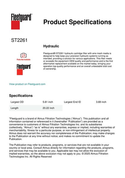 Fleetguard ST2261 Replacement Hydraulic Filters