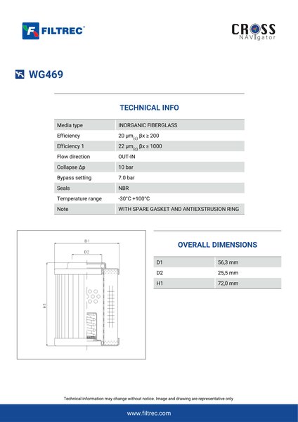 The efficiency of the element is shown using the Micron (µ) and Beta (β) ratings. The micron rating indicates the size of the particle being filtered and the beta rating the efficiency, calculated as 1/β.