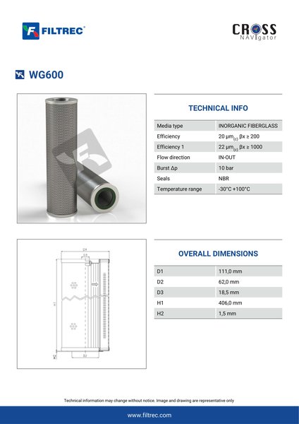 Genuine Filtrec WG600. This Filtrec element is designed to meet or exceed the quality and performance of brand OEM’s ensuring superior filtration performance and long-lasting durability.