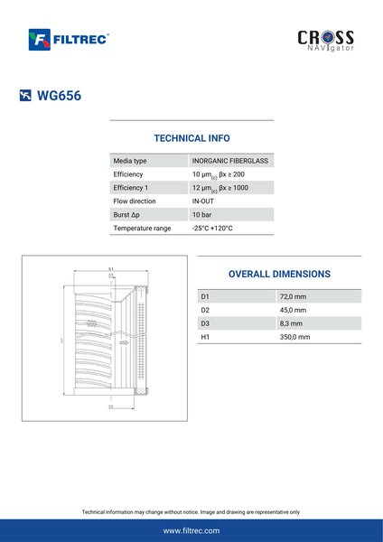 Engineered with their high performance media and a durable design, the WG656 provides reliable and consistent performance over its lifespan, even in harsh operating environments. When you order from FilterFinder, you can trust that you are getting a reliable and high-quality replacement filter that will keep your system running smoothly.
