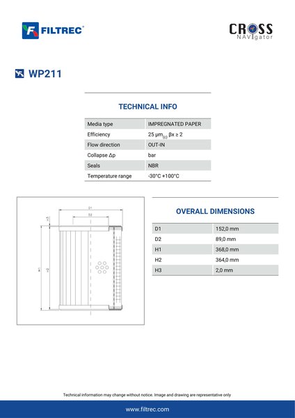 Engineered with their high performance media and a durable design, the WP211 provides reliable and consistent performance over its lifespan, even in harsh operating environments. When you order from FilterFinder, you can trust that you are getting a reliable and high-quality replacement filter that will keep your system running smoothly.