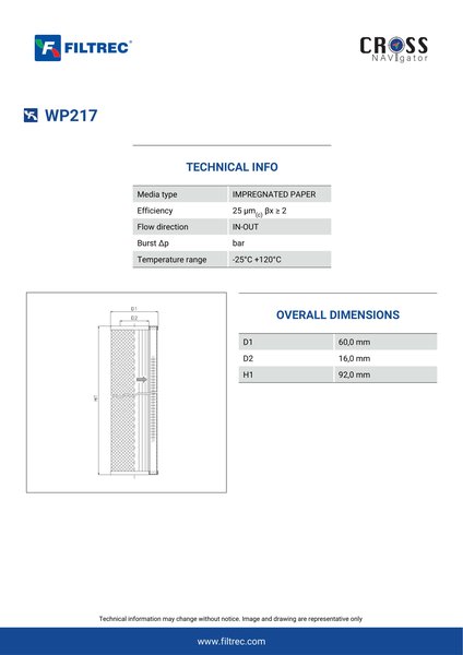 Genuine Filtrec WP217. This Filtrec element is designed to meet or exceed the quality and performance of brand OEM’s ensuring superior filtration performance and long-lasting durability.