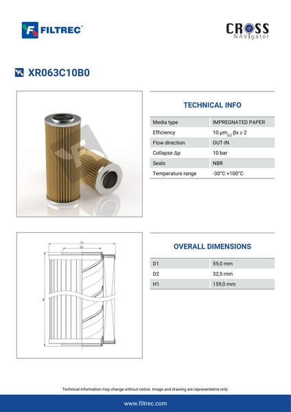 Genuine Filtrec XR063C10B0. This Filtrec element is designed to meet or exceed the quality and performance of brand OEM’s ensuring superior filtration performance and long-lasting durability.