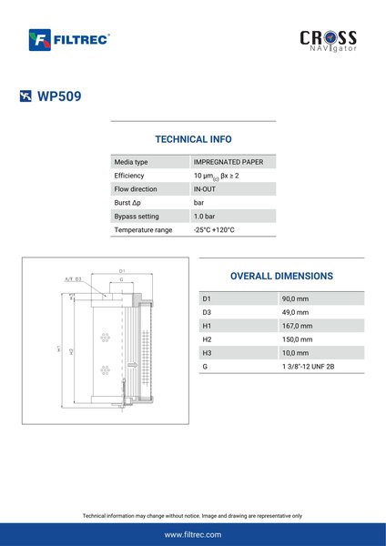 Genuine Filtrec WP509. This Filtrec element is designed to meet or exceed the quality and performance of brand OEM’s ensuring superior filtration performance and long-lasting durability.