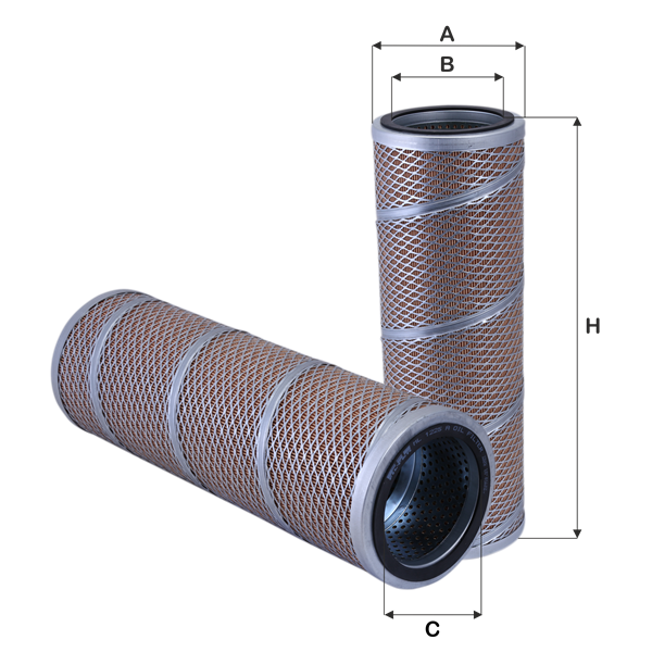 The efficiency of the element is shown using the Micron (µ) and Beta (β) ratings. The micron rating indicates the size of the particle being filtered and the beta rating the efficiency, calculated as 1/β.