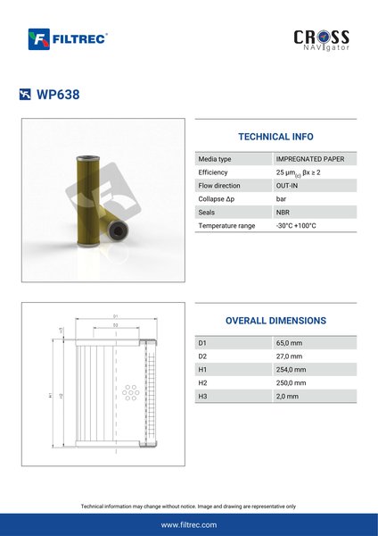 Genuine Filtrec WP638. This Filtrec element is designed to meet or exceed the quality and performance of brand OEM’s ensuring superior filtration performance and long-lasting durability.