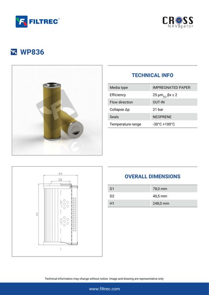 Genuine Filtrec WP836. This Filtrec element is designed to meet or exceed the quality and performance of brand OEM’s ensuring superior filtration performance and long-lasting durability.