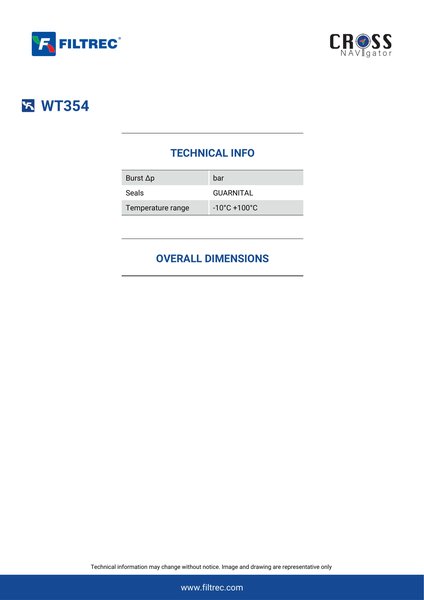 Genuine Filtrec WT354. This Filtrec element is designed to meet or exceed the quality and performance of brand OEM’s ensuring superior filtration performance and long-lasting durability.