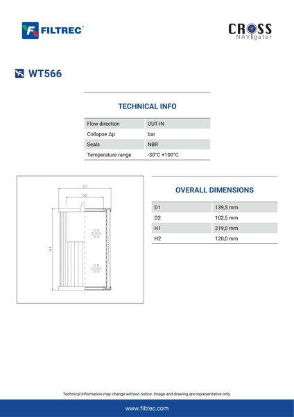 The efficiency of the element is shown using the Micron (µ) and Beta (β) ratings. The micron rating indicates the size of the particle being filtered and the beta rating the efficiency, calculated as 1/β.