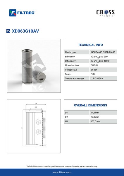 Genuine Filtrec XD063G10AV. This Filtrec element is designed to meet or exceed the quality and performance of brand OEM’s ensuring superior filtration performance and long-lasting durability.