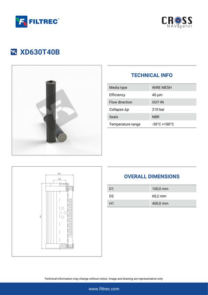 The efficiency of the element is shown using the Micron (µ) and Beta (β) ratings. The micron rating indicates the size of the particle being filtered and the beta rating the efficiency, calculated as 1/β.